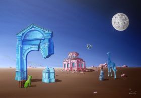 Olivier Lamboray, a Belgian surrealist painter, is on year 22 of his artistic journey filled with dedication and discovery. Projecting a harmonious balance of whimsical color pallets with the seductive mystery of surrealism, the artist explores the dynamic shapes of architecture through their relationships with color and their manipulated surroundings. The presence of animals in his works reflects both the great value of all spectra of life and the compassion he holds for it.