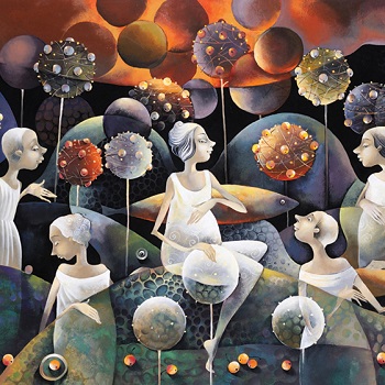 Troy Bunch’s paintings, which he would call imaginative realism and/or surrealism, usually depict women juxtaposed with images from nature and dreams.