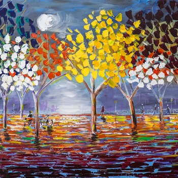 Meir is known for his large scale paintings and strong use of color; he combines expressionist and figurative genres with Jewish spiritual elements in his work.
