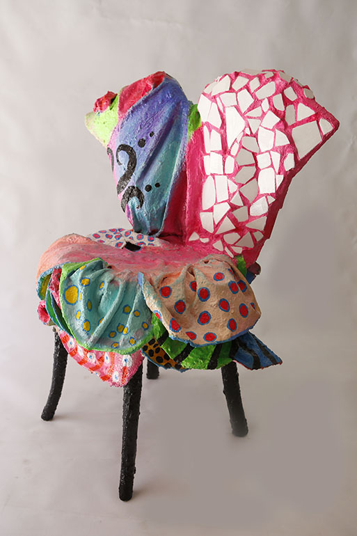 MARIBEL RUIZ FIGUERAS (Barcelona, 1946) is a multifaceted artist, painter and sculptor. In her artistic series of abstract expressionism she uses color and matter with a great sense of balance and a mastery of the techniques of color interaction. This self-taught artist has never stopped researching and discovering new textures to give life to different materials. Since she was a child, she was interested in art and drawing, beginning to work in small format, until she was gradually introduced new dimensions to her watercolors and acrylics. In her works, the artist represents the flow of raw emotion through a resolute stroke, absolutely devoid of decision and security. The year 1995 was a turning point in her career, the moment that she began to rescue everyday objects, which over time had eroded and gave them new life raising them to the category of Art. This is how her famous ‘Chairs’ series began, finding, by chance, two old chairs abandoned on the street next to her house, which, after much soul searching, she decided to recover to provide them soul through color. Maribel Ruiz Figueras has participated in numerous exhibitions, both collective and individual, in Europe and the United States. Her work is part of several private collections, such as the Axarquia House Museum, the collection of the Duquesa de Alba, Lucciano Pavarotti Collection, among others.